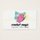 Cute animal or monster fairy with magic crochet hook on this business card for crocheted yarn crafts, personalized with your choice of color scheme and fonts, perfect for gifting and craft show sales.
