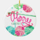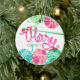 Crochet hook spells "Merry" with yarn, with fluffy yarn background on this Christmas tree ornament for your favorite crochet crafter.