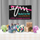 Loopy yarn stitch wrapped around a crochet hook on this craft show booth or table display banner, personalized with your choice of fonts and text and color scheme.