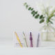 This business card has a color photograph of a 4 colorful crochet hooks. They are gold, sea foam green, purple, and dusty blue. You can easily customize all of your business information on the front and back of the card. This would be a great business card for yarn retailers, or for a handmade crochet business.