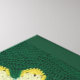 Crochet pattern of daisy in yellows, gray and hunter green.