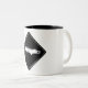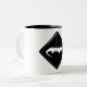 Black & white crocodile sign with drop shadow on two-tone mug.