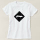 Black & white crocodile sign with drop shadow on white woman shirt.
