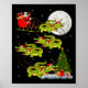 Crocodile Alligators Santa Sleigh Flying Funny Chr Poster