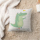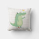 This pillow features a cute crocodile illustration with a yellow flag and horizontal lines. It is easily customizable with a name or a short phrase.