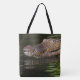 This tote bag has a crocodile pictured on it.