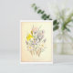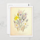 This postcard is a reproduction of a vintage botanical illustration by Jane Loudon showing a pink and purple crocus bouquet.