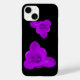 This awesome iPhone case features a photo of a crocus flower that has been digitally altered by adding a filter to turn the flower purple. There are two of these flowers, one upside down and the other the right way up. The flowers are on a black background.