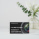 Display the tools of the trade with this photographer's business card. A camera lens is cropped off on the right side of the business card with contact information to the left. Add your own photograph on the reverse to highlight your talents. Available with matching products.