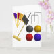 Like croquet then this design is for you. It has all the gear you need for a game of croquet. The balls, the mallet, the goal and the flags. A full croquet set. This game of croquet design looks great on these greeting cards