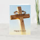 A simple wooden cross with a crown of thorns resting on the crossbar makes a beautiful, Christian-themed Easter card.