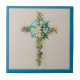 Ceramic Tile with a beautiful image of the Cross with Easter flowers is from a 1910 postcard design.