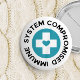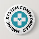 Compromised immune system button in white with a blue circle in the middle with a white cross and a blue heart.