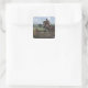 This Square Sticker features an original digital artwork of a horse and riding jumping over a farm gate, created in Vue by artist Jayne Wilson.