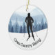 Cross Country Sking Design Ceramic Ornament with customizable text.