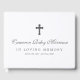 Memorial service guest book in white with gray text and a cross. Add your loved one's name in a gorgeous script.