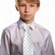 An elegant religious pattern tie that has as a pattern a cross from faux silver foil on white background, recommended for a boy's first communion.