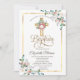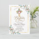 Cross Floral Roses Frame Baptism Invitation