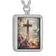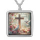 In Loving Memory of Memorial, Remembrance, Bereavement, and Keepsake Necklaces are meaningful and unique pieces designed to remind you of a Loved One or Friend, and a Beautiful Life once lived. Personalize this In Loving Memory Necklace by Adding Your Loved Ones Name. Your Loved Ones Name will appear on the Christian Cross. Perfect for Male or Female Loved Ones. The Verse says, "In Loving Memory of Name." You can change what the Verse says if you like. Personalize this Tribute Necklace to your Hearts content. The Artwork features A Christian Cross that is surrounded by Beautiful Flowers. A Beautiful White Dove is seated at its base, and another White Dove is in flight. Flower Petals are scattered at the base of the Art Jewelry. Candles with Golden Light are glowing. In Loving Memory Necklaces are the Perfect Gift to Honor a Loved One.