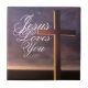 This 'Jesus Loves You' ceramic tile features a wooden cross with a beautiful night sky.