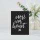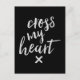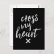 Inspirational postcard displaying the phrase "Cross My Heart" in white brush script with an organic ink texture to achieve an authentic, hand lettered look.