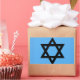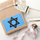 Simple black Cross of David, a symbol of Judaism and the Jewish community, on a background of sky blue.