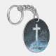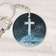 Cross on Water Dark Blue Scripture Personalized Keychain