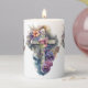 This Beautiful Christian Cross Candle features Artwork done in Watercolors of a Cross that is surrounded by Flowers. The design is on all three sides of the Candle, so you can enjoy the Artwork from any angle. It will give a Lovely Peaceful Ambience.