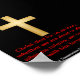 Poster with the words from 1 Thessalonians 5:10 (New Living Translation) on it below the cross of Christ. An excellent product to place on your wall to remind you of exactly what Christ did on the cross. Black background with red text.