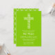 A white open weave cross on a bright spring green background - CHANGE TO ANY COLOR - is ideal for your child's Christening, Baptism, Dedication or First Communion Invitations. Personalize with your daughter's name and the event details. Available in several shades of blue, pink, coral, peach, purple, silver, gold and lots of other colors or use our color picker tool to change to your perfect color. See MATCHING products ---> http://bit.ly/2GSK0No <---
