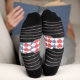 I love these Mona Lisa Christmas Socks! They are soft and very comfortable. The print looks great, on all sides including the most stretched area around my calf.