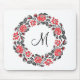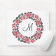 Cross-stitch Red Roses Circle Monogram Initial Mouse Pad