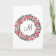 Cross-stitch Red Roses Circle Monogram Initial Note Card