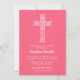 A white open weave cross on a bright watermelon pink background - CHANGE TO ANY COLOR is ideal for your child's Christening, Baptism, Dedication or First Communion Invitations. Personalize with your daughter's name and the event details. Available in several shades of pink and lots of other colors or use our color picker tool to change to your perfect color. See MATCHING products in our store.