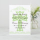 Cross themed wedding save the date cards feature a cross design with calligraphy borders and multiple text fields that you can customize with your personal details on the front while the back has a damask pattern in green and brown.