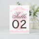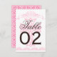 Cross themed wedding table numbers feature a cross design with calligraphy borders and multiple text fields that you can customize with your personal details on the front while the back has a damask pattern in pink and brown.