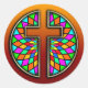 CROSS WITH STAINED GLASS CLASSIC ROUND STICKER