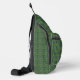 Cross-body bag in an abstract green print and sporting a Simon's Rock solid black sapling