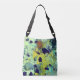 Abstract art lights up this crossbody tote bag in Lantern's design of light green, yellow, and blue! And inside this roomy tote are three pockets!
