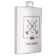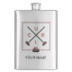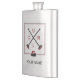 Flask featuring a crossed brooms design in red and charcoal. Perfect for curlers and curling fans. Option to customize with your name.