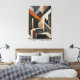 Geometric abstract art with shapes resembling stairs and architectural blocks. Tones of black, white and rusty orange. Sophisticated painted texture. Ideal for modern decoration and offices. Structural design playing with perspective and depth in an elegant and contemporary composition.