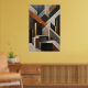 Geometric abstract art with shapes resembling stairs and architectural blocks. Tones of black, white and rusty orange. Sophisticated painted texture. Ideal for modern decoration and offices. Structural design playing with perspective and depth in an elegant and contemporary composition.