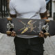 Ruby pommel swords cross behind a golden dragon on a black background with your name.