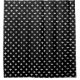 A shower curtain with a pattern made up of many hand drawn cross motifs inspired by traditional African mud cloth designs.