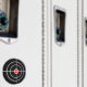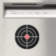 Crosshairs shooting target magnet with red bullseye. Colors can be changed.