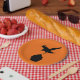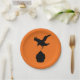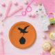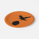 Fun plates with the silhouettes of a crow dive bombing a cupcake. Fun for a Halloween baby shower or the goth mom-to-be.