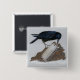 Color pencil drawing of a curious crow investigating a shiny harmonica he has found.
