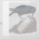 A color pencil drawing of a curious crow investigating a shiny harmonica adorns this customizable stationary!