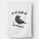 This is a professionally crafted, monochromatic illustration featuring a raven perched on a tree branch, rendered with a distinct halftone texture to evoke a vintage aesthetic. Positioned prominently above the bird is the bold, stylized text "F-CAW-F," offering a humorous twist that complements the gothic and potentially spooky or Halloween themed vibe of the raven. The overall composition blends dark, vintage tattoo style elements