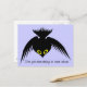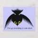 This cute postcard features a cartoon style image of a crow. The crow is black with yellow eyes and has its wings outstretched. The background is blue. Underneath the crow, in ancient style script it says "I've got something to crow about". If you have something important going on in your life that you want to let everyone know about then this is the postcard you need.